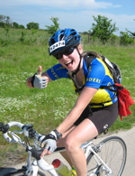 RAHUL YOUNG Rahul fights MS so that he can have an excuse to wear spandex and to win the heart and grundel of his girlfriend Meg. He also embraces the opportunities for mid-ride karaoke, whether they be singing Bon Jovi in a driving windstorm, or butchering Metallica lyrics when he thinks that no one's watching. Rahul hopes to end his 16 months (and counting) of unemployment any day now and start saving the world again in San Francisco. For now, you can find him wrestling calves and wearing chaps in rural Oregon. |